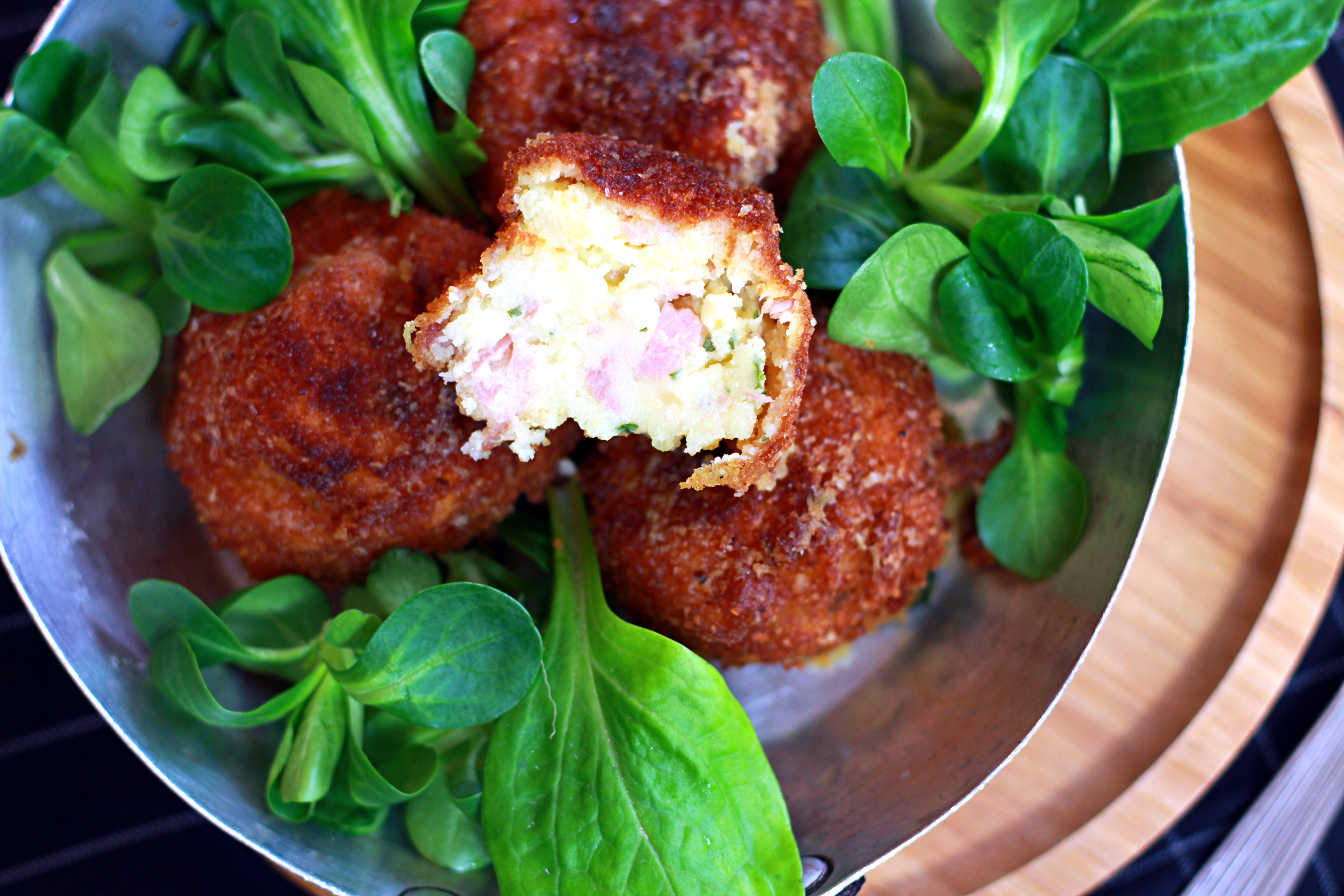 ← Un reste de purée? Des croquettes jambon-comté (polpette)!