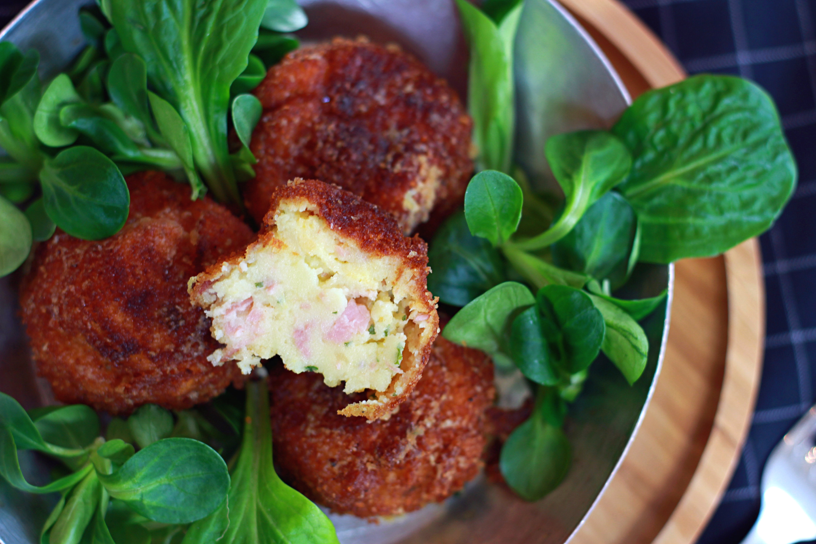 ← Un reste de purée? Des croquettes jambon-comté (polpette)!