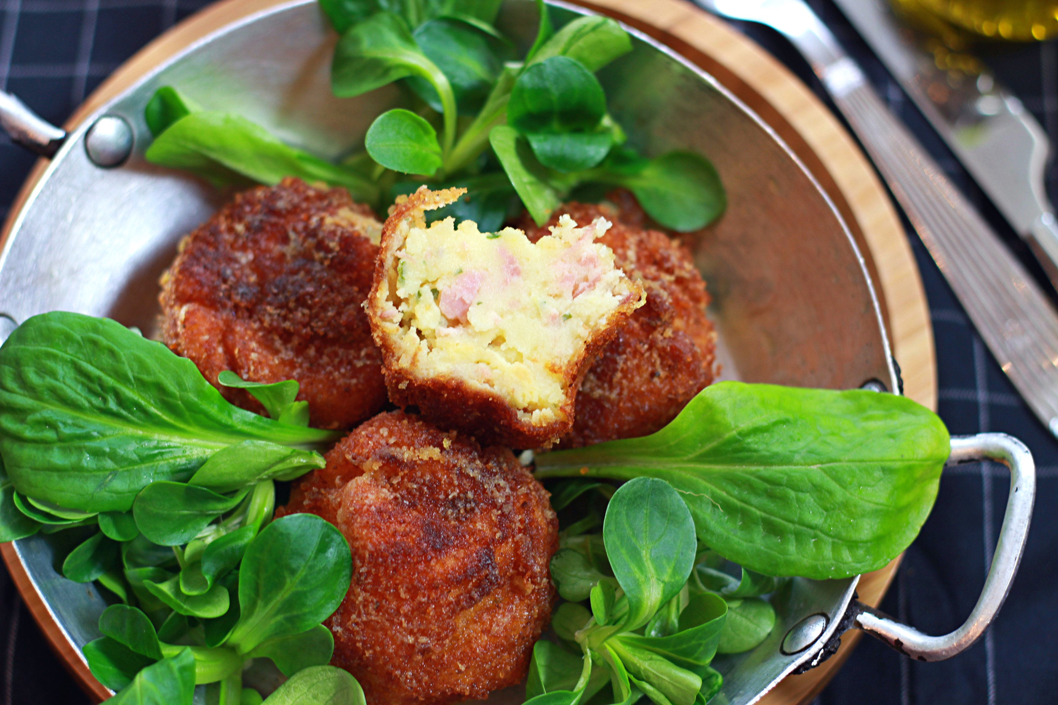 ← Un reste de purée? Des croquettes jambon-comté (polpette)!