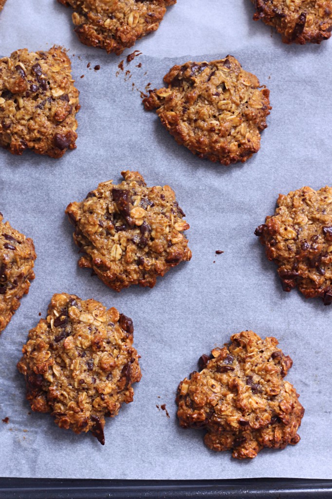 Très sincèrement, j’ai adoré ces cookies même s’ils n’ont rien à voir que ce soit en texture ou en goût avec des cookies « normaux »! Je trouve que ca s’apparente davantage à des barres de céréales (mais moelleuses…) sûrement à cause de l’avoine! En tout cas je me suis régalée, et j’espère que vous en ferez de même!!