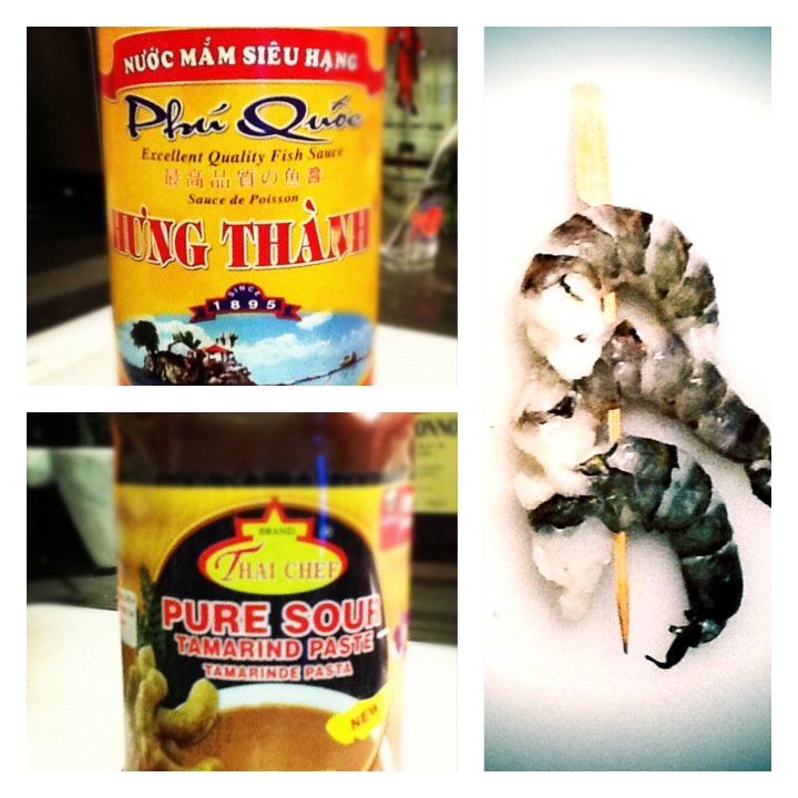 Faites chauffez votre huile dans une poêle ou un wok sur feu vif mais pas jusqu’au point de fumée. Ajoutez l’échalote et l’ail et faites les revenir rapidement (30 secondes) pour parfumer votre huile. Ajoutez les crevettes et faites les revenir pendant 1 minute environ. Elles auront légèrement rougies et seront à moitié cuites. Elles vont recracher un peu de jus et seront bien brillantes. Ajoutez la sauce au tamarin sur vos crevettes et faites revenir 2-3 minutes jusqu’à ce que la sauce s’épaississe un petit peu.