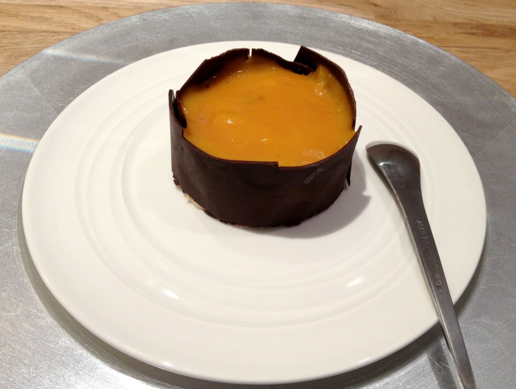 Une fois toutes les opérations réalisées, il ne vous restera plus qu’à découper la gelée de fruits de la passion à l’aide de votre emporte pièce et de la poser délicatement sur le sommet de votre entremet.