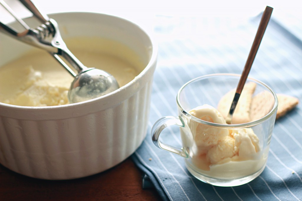 Résultat de cet essai : une glace vanille bien bonne, « passe partout », bien crémeuse, et à customiser selon ses envies (avec des fruits, des pépites de chocolat, des biscuits, du Nutella, ou que sais-je encore!?).