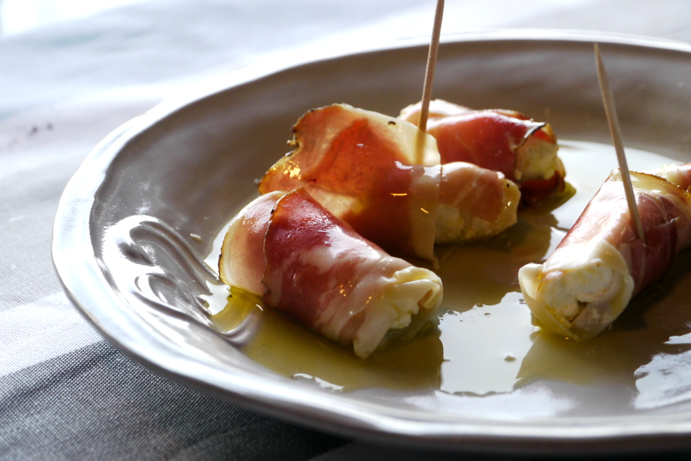 Avec un nom pareil, c’est sans trop de surprise si je vous annonce que nous avons affaire à un antipasti italien! En effet, « involtini » signifie roulés en italien. Cette dénomination s’applique pour toutes préparations roulées. Celle que je vous présente pour la 24ième édition de la battle food (dont le thème du fromage a été choisi par Délice Céleste) est probablement une des versions les plus connues. Elle fait intervenir peu d’ingrédients et se prépare assez vite mais se consomme encore plus rapidement! Ce que j’aime dans cette recette c’est l’association entre le fumé du Speck et la douceur du fromage frais de chèvre. Le Speck, qu’on rencontre de plus en plus en France, jouit d’une bonne réputation dans le nord de l’Italie surtout dans la région dell’Alto Adige (située au nord-est de Milan) d’où il est originaire. Cette charcuterie est protégée par une IGP depuis 2011 et me rappelle mes séjours dans la région d’origine d’un de mes grand-pères. Allez passons aux choses sérieuses .