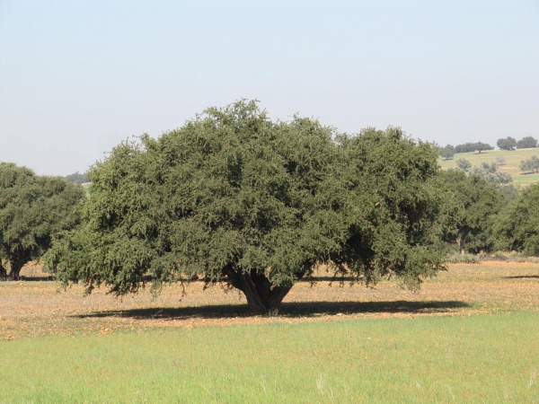 Cette huile provient  de l’arganier, un arbre qui pousse principalement dans le sud ouest marocain mais aussi dans l’est de l’Algérie. Originellement, l’arganier était appelé « Argania Spinosa ». Il s’agit d’un arbre de la famille des épineux (d’où son nom “Spinoza” ) qui peut atteindre 10 mètres de hauteur et vivre jusqu’à 200 ans. L’arganier donne des fleurs et des fruits. La floraison se déroule entre mai et juin. Le fruit qui nous intéresse aujourd’hui et dont on extrait la fameuse huile à partir des graines à la taille et la forme d’une grosse olive. Il est constitué d’une pulpe et d’un noyau contenant des graines appelées amandons.