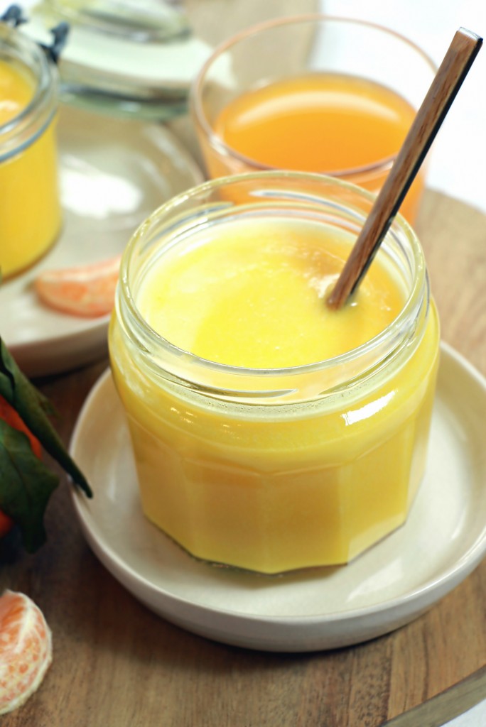 Depuis cette émission je me force à acheter beaucoup moins et à utiliser davantage les aliments un peu « abîmés » qui trainent dans mon frigo ou dans ma cuisine… Et voilà comment j’en suis arrivée à ce clémentine/mandarine curd!