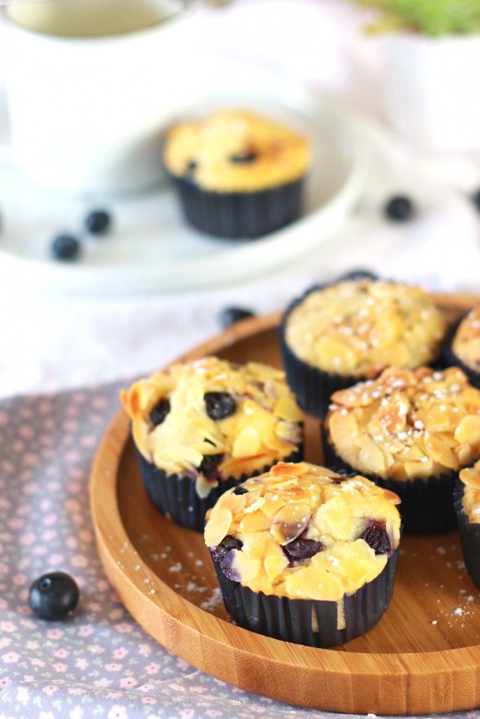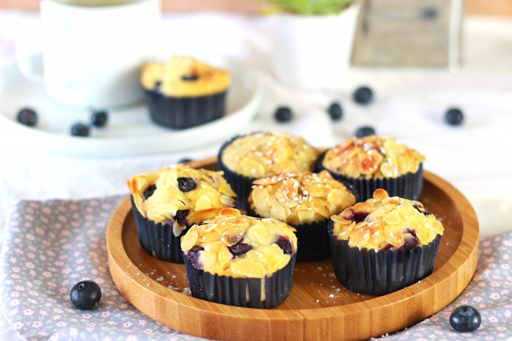Remplissez les caissettes au 3/4 et disposez des myrtilles (au minimum 5 par caissette) et saupoudrez d’amandes effilées.