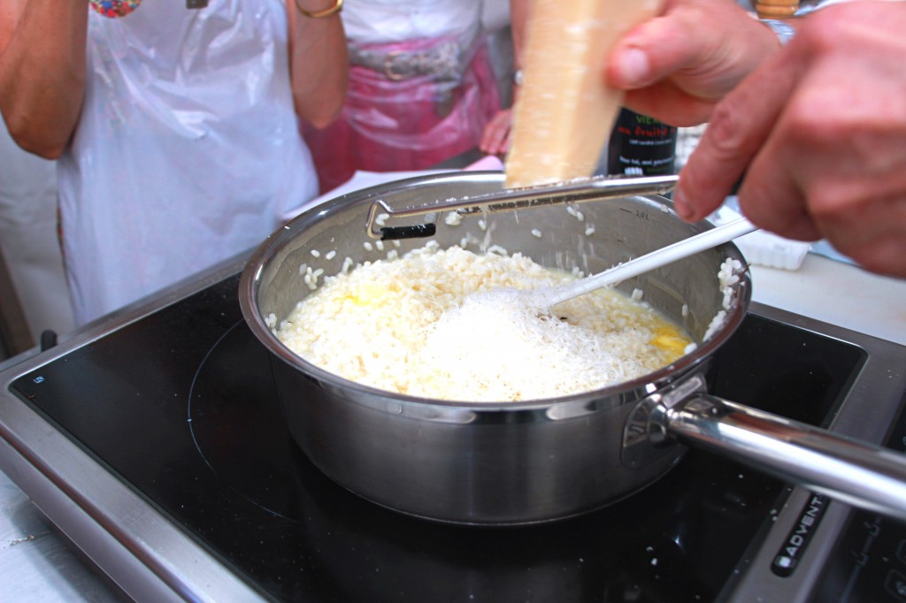 Finir le risotto avec du beurre et le lier au parmesan.