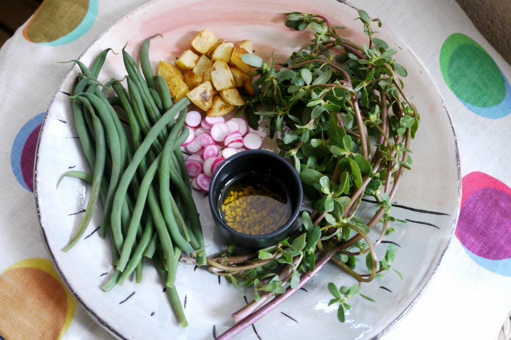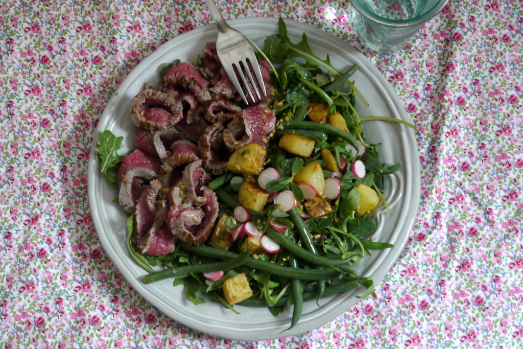 3 Responses to Salade pommes de terre au bœuf, roquette et pourpier