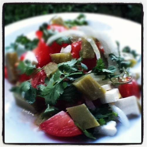 - 4 petites raquettes de nopal frais, ou, à défaut, 500g de nopal en conserve