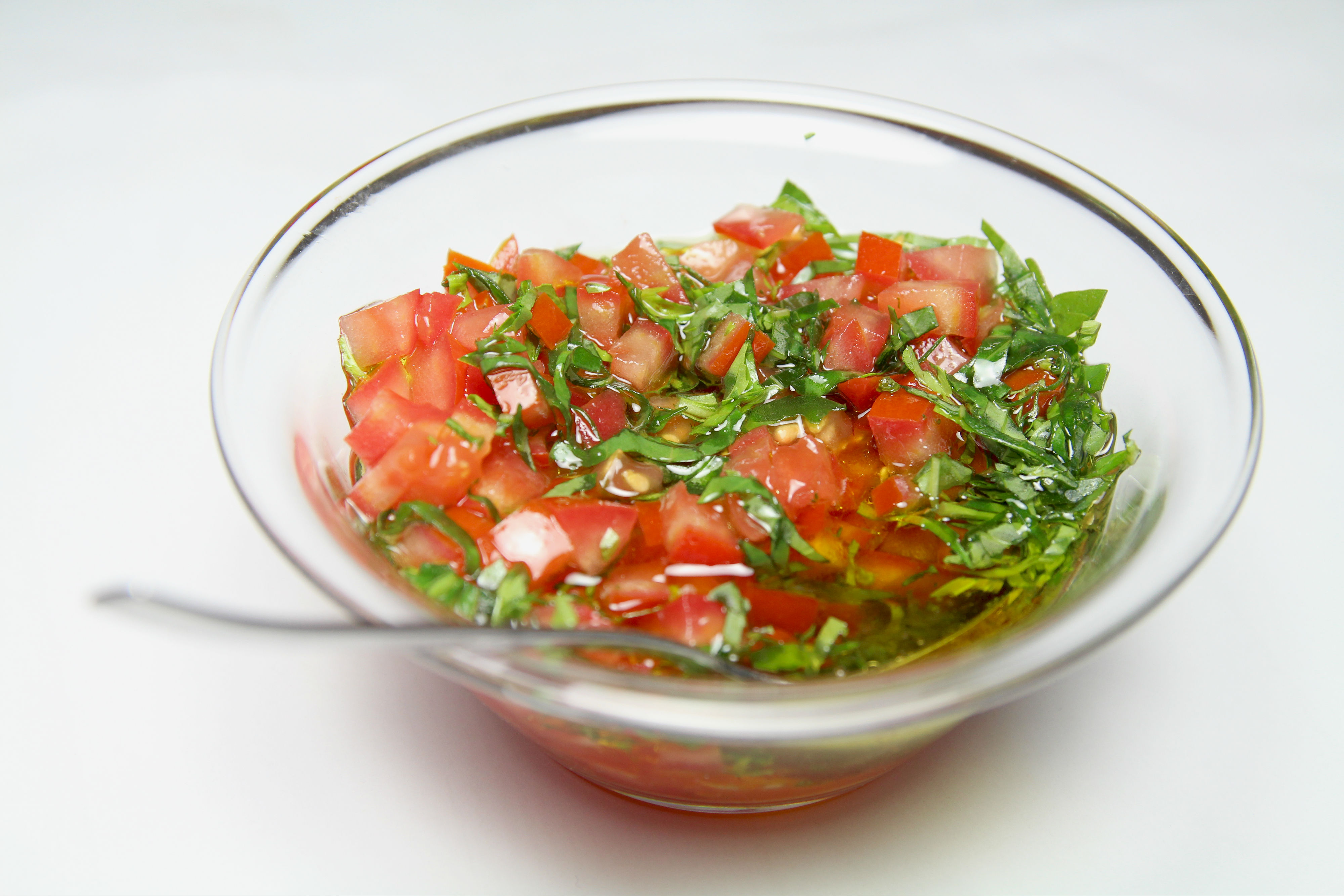 Aujourd’hui on vous propose une recette très classique (on aime bien ça revoir les basiques chez THCF), bien connue de nos amis de la Méditerranée, j’ai nommé la « sauce vierge ». C’est une préparation hyper simple et rapide que l’on peut utiliser avec beaucoup de plats (poisson, viande, légumes, pain…), que l’on peut manger chaude, tière ou froide bref, que l’on peut personnaliser à l’infini. Personnellement, j’adore cette sauce et elle m’a trés souvent aidée lorsque que je ne savais pas comment accomoder un plat ou que je n’avais pas grand chose dans le frigo. Allez, tous en cuisine!